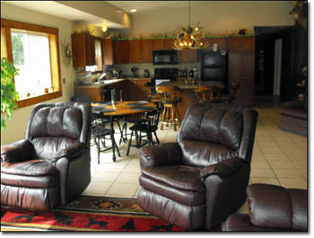 Our deer ranch's living quarters within the preserve were remodeled in 2011. Listed below are two photos of the dining room, kitchen, living room area along with a photo of 1 of the 3 bedrooms which are all laid out very similar.